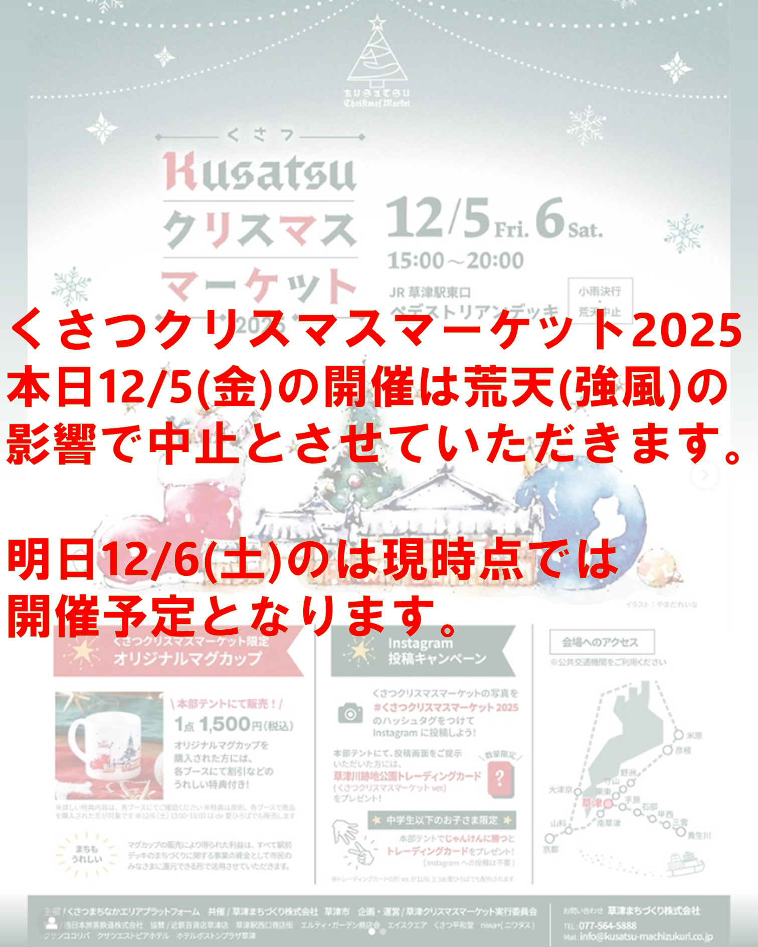 ○くさつクリスマスマーケットInstagram:https://www.instagram.com/p/DRgYUvFkkIT/