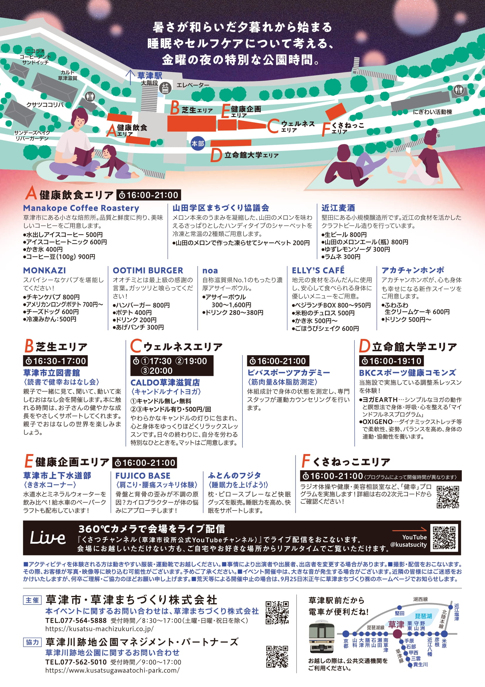 ・荒天等による中止判断は 9/25(木)正午に草津まちづくり(株)HP・SNS、草津市HPにてご案内いたします。