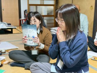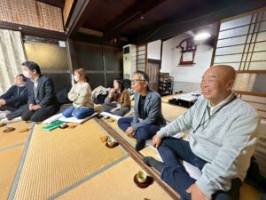 休憩のタイミングでは、真願寺の住職からお茶とお菓子の差し入れをいただき、