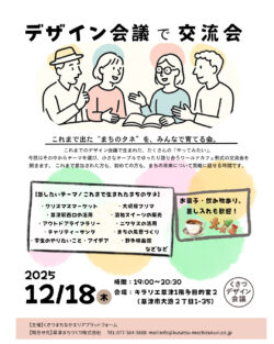 12月18日(木)、キラリエ草津 多目的室2にて、第9回くさつデザイン会議を開催しました。今回は、これまで話題に上がってきたさまざまなアイデアや企画を改めて振り返り、意見交換と深掘りを行うワールドカフェ形式で実施しました。